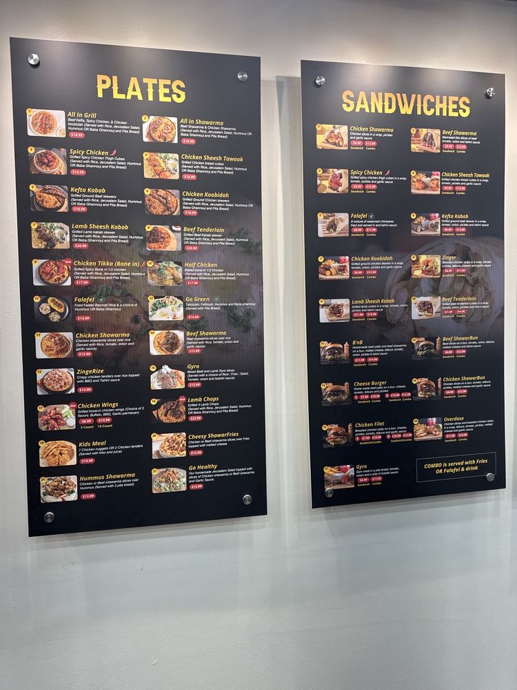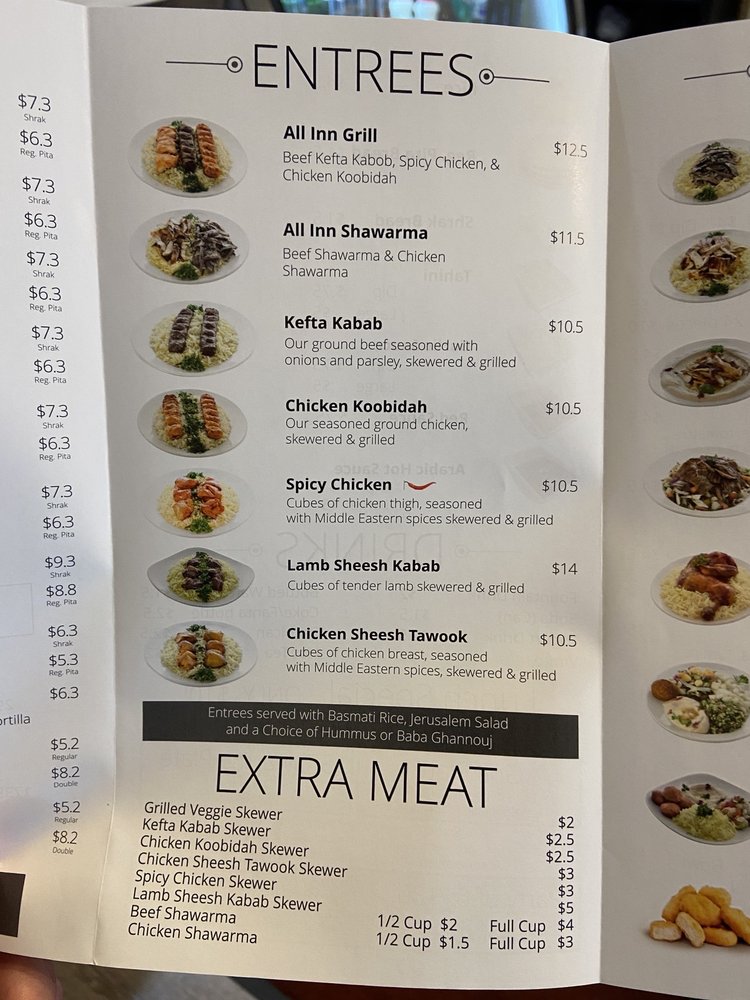 Beef Kefta Kabob, Spicy Chicken, & Chicken Koobidah Served with Basmati rice Jerusalem Salad , Hummus OR Baba ghanouj and Pita bread