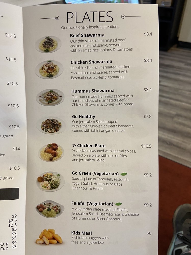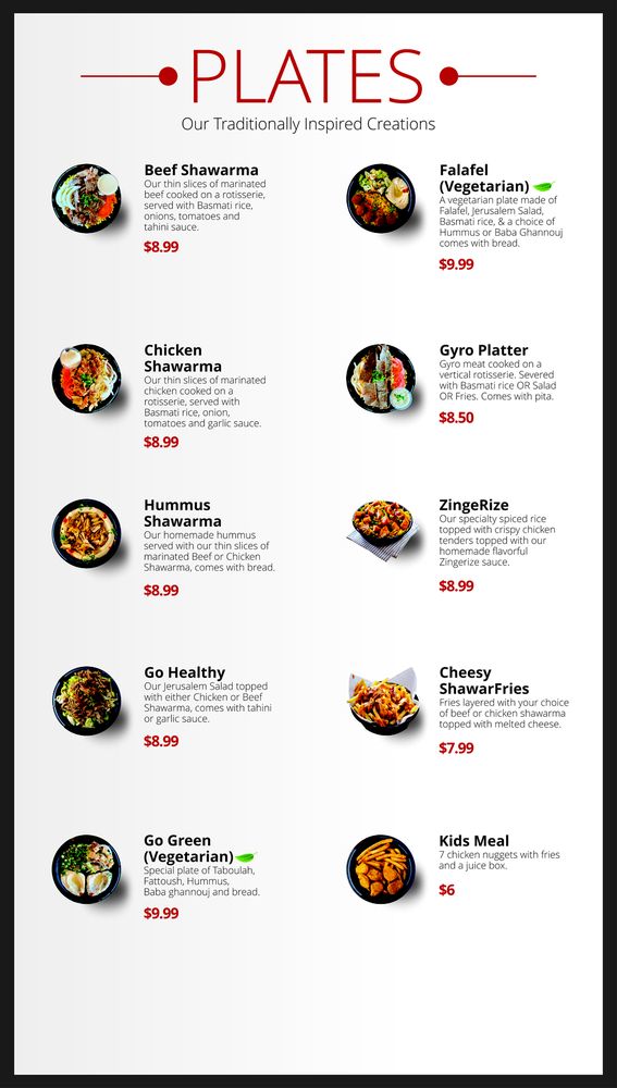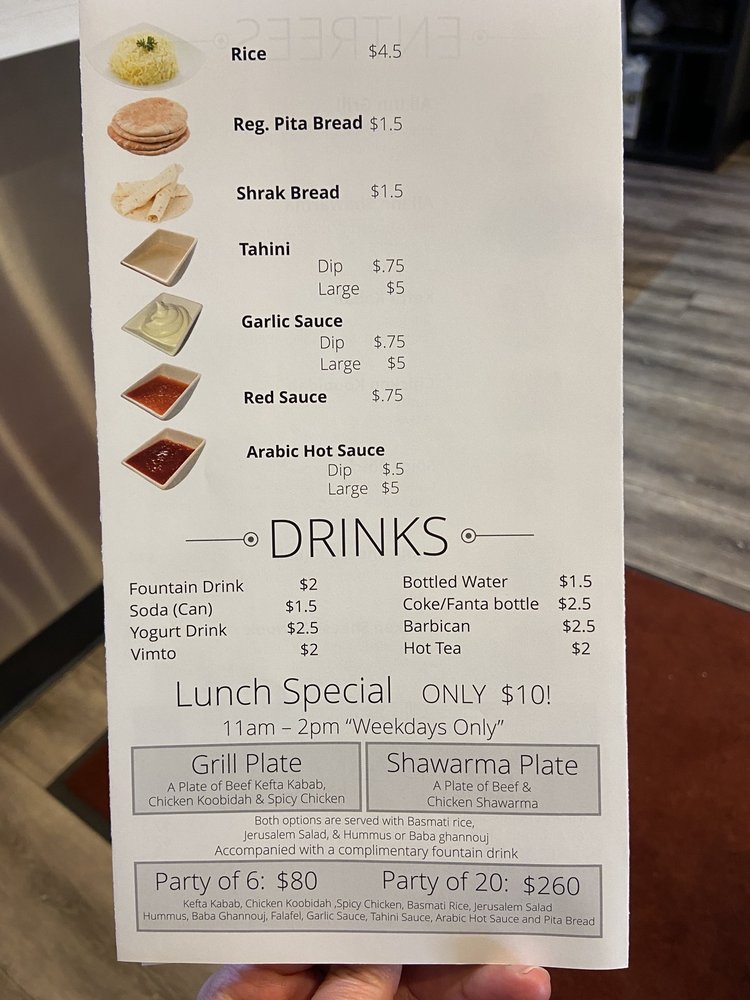 Beef Shawarma & Chicken Shawarma Served with Basmati rice Jerusalem Salad , Hummus OR Baba ghanouj and Pita bread